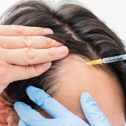 当院では特に増殖力の高い厳選された幹細胞から得られた、発毛の作用が強いとされるものを使ってます。それを薄毛の目立つ個所にピンポイントで注入します。